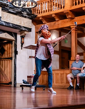 That laugh, however, was an especially loud guffaw from a woman among those sitting on the gallant stools. Hoben walked toward the woman to express her appreciation, and discovered instead a Marvel shopping bag next to the woman's stool. Hoben showed it off in triumph, earning not just laughter throughout the playhouse but applause, too.—EM